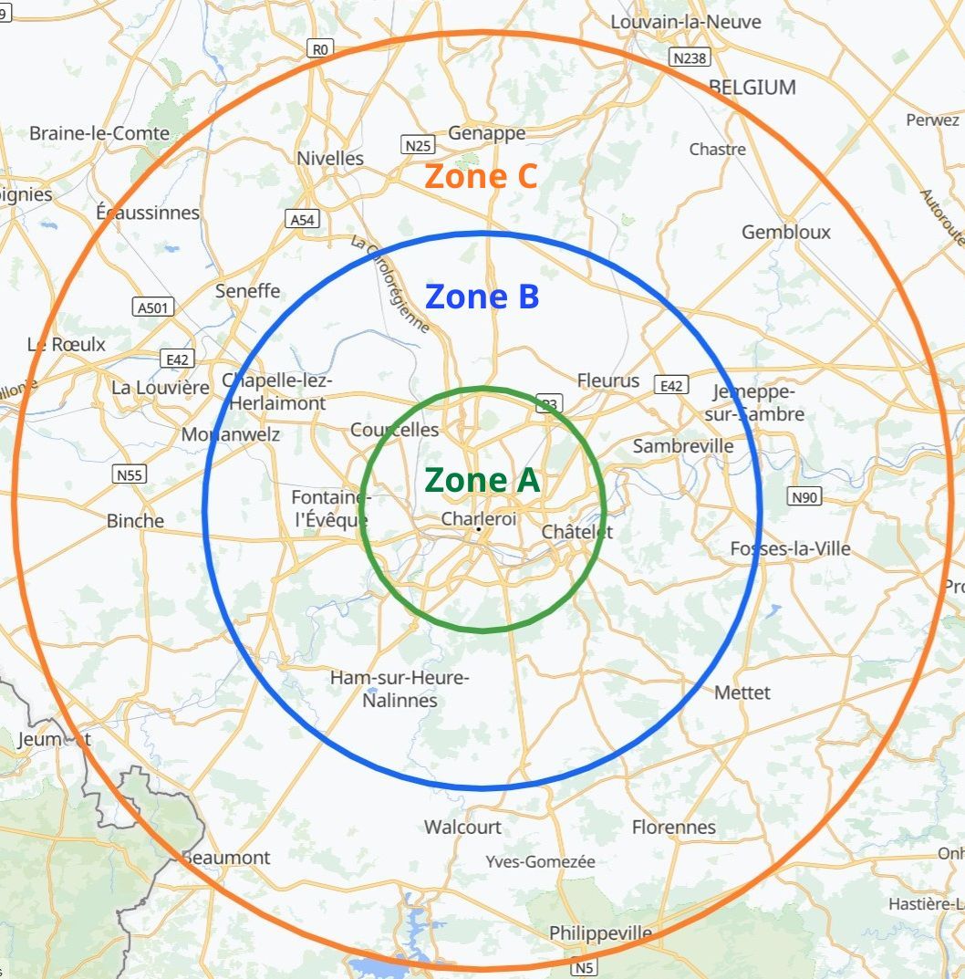 🔵 Zone B (11 à 20 km) : 10 € / déplacement